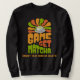 JEU Fun SET MATCHA Fun Latte Drinker sweatshirt avec TEXTE PERSONNALISABLE, pour les buveurs de matcha latte thé qui aiment le tennis. Le design montre une typographie de style rétro dans des couleurs vibrantes, avec un libellé qui lit GAME SET MATCHA et WORTH PLAYING FOR. Cette dernière ligne est PERSONNALISABLE, vous pouvez donc PERSONNALISER avec votre propre libellé ou supprimer.