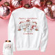 Un joli bonhomme de neige joyeux chemise de Noël pour dames avec un prénom. Mettez un sourire sur le visage de quelqu'un avec ce mignon Sweatshirt Dames conçu avec un groupe de trois hommes de neige habillés de couleurs vives festives de rouge et vert. Le texte comprend : Joyeux Noël et un prénom. Pour personnaliser, il suffit d'insérer le nom dans notre modèle facile, en remplaçant l'échantillon.