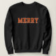 Répandez un peu de joie de vacances avec ce pull de Noël avec un "MERRY" audacieux dans la typographie de style université en orange. Ce style cosy est parfait pour des fêtes moches en pull ou des rassemblements de vacances décontractés pendant toute la saison festive.
