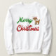 Sweatshirt avec Joyeux Noël en texte vert et rouge 3D et un renne. Sweatshirt disponible pour les hommes et les femmes.
