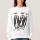Venez dans l'esprit de vacances avec cette chemise de baseball noir & blanc éclatante avec un trio de mignons pingouins habillés de chapeaux de Père Noël, de cravates d'arc, et (littéralement !) un printemps dans leur marche. Les légendes entourant leurs chaussures de printemps enroulées super force lisent "Boing! Boing !" en noir. La légende du dessus (en or, rouge et vert) dit "Jumpin’ Jiminy Xmas !" Ce drôle de design original est de l'artiste numérique Leslie Sigal Javorek.