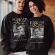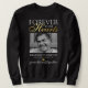 Sweatshirt funéraire élégant avec une photo de votre être cher perdu, le texte "pour toujours dans nos coeurs", leur nom, date de naissance/mort, un faux coeur en feuille d'or, et le souvenir disant "parti mais pas oublié".
