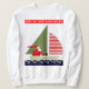 Amusante chemise de Noël à thème voile avec Père Noël en voilier et ligne créative.