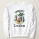 Design de Noël amusant avec une illustration du Père Noël se reposant à la plage sous un palmier sur une petite île. Un match parfait pour Noël en juillet ainsi que pour Noël en décembre.