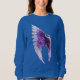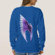 Belles et parfaites petites ailes d'ange de couleur violette avec blanc détaillé et défini et en même temps quelques détails. Juste une paire de petites ailes violettes avec de petites ailes blanches complètes. Des ailes hyper-détaillées et hyper-réalistes. Ailes avec une légère décoration dans les tons violet et blanc. De petites ailes complètent à la fois l'aile droite et l'aile gauche, l'arrière - plan est bleu foncé,