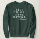 Sweatshirt personnalisé avec le nom d'une maman chic et bien-être amicale qui aime boire du thé matcha. Design monochromatique minimaliste simple et minimaliste, avec un look premium. Maman mérite et a besoin de temps pour elle-même. Comme la mère combustible et aussi comme moments de paix rituel dans la maternité chaos. "MOINS CHAOS, PLUS MATCHA" typographie entièrement personnalisable disant, phrase, amusant devis décontracté pour un passionné de thé matcha. Les boissons vertes saines et tendance gagnent en popularité ces jours-ci. Le nom personnalisé est comme une signature, en calligraphie manuscrite. Une tenue tendance mais confortable pour vous ou comme un cadeau personnalisé réfléchi pour une autre maman de votre groupe d'amis maman. Anniversaire, Noël ou fête des Mères cadeau ou cadeau d’amitié juste parce que. La maternité, le bien-être chic et cool comme les habitudes peuvent et doivent coexister. Même un petit cadeau pour une mère d'être, à un baby shower, à côté des cadeaux pour le bébé. Un cadeau personnalisé de moins de 35 dollars pour elle, mère.