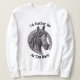 "Je préfère être à la grange" est le sentiment qui accompagne ce croquis de cheval vintage. Un grand cheval foncé avec une longue crinière lui pointe la tête à travers un fer à cheval au centre de ce sweatshirt. Courbé au-dessus et au-dessous de cette gravure noir et blanc est le texte qui peut être facilement customisé si vous le souhaitez.