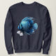 Ce sweatshirt nautique présente un poisson bleu-noir dynamique de l'océan avec des queues de plumes qui coulent librement. Imaginez les écailles bleues et noires avec des couleurs chatoyantes qui changent alors que le poisson glisse dans les eaux côtières de l'océan. Un design d'inspiration marine dynamique avec coquillages à côté.