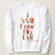 Ce sweatshirt féminin affiche le verset Psaumes 23:4 KJV de la Bible Écriture "I Will Fear No Evil" dans une police d'impression unique avec des lettres oranges noir contour plus citation bible. Ce sweatshirt est fait à 100% coton cette chemise est à la fois peluche et durable qui font une belle combinaison avec une image plus petite assortie imprimée sur le dos.