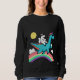 Sweatshirt unicorn with sunglasses riding a dinosaur and rain
