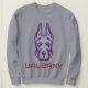 Le logo de la mascotte de l'Université d'Albany Great Dane présente une représentation stylisée de la tête d'un grand Danois. Le chien est illustré de lignes vives et audacieuses en violet et gris, lui donnant une expression féroce et confiante. Les oreilles sont hautes, symbolisant la vigilance et la force. Sous la tête du Grand Danois se trouve le mot "UAlbany" écrit en caractères d'or gras et bloquants, surligné de violet, renforçant l'image de marque de l'université. Cette conception représente les équipes sportives d'UAlbany, mettant en avant le pouvoir, la loyauté et la détermination.