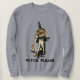 This sweatshirt is perfect for Halloween with its vintage style illustration of a classic witch and cat in black, orange and cream. The slogan "WITCH, PLEASE" can be customized with your own text.