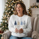 Sweatshirt Whimsical Merry Christmas Festive Trees Blue Gold