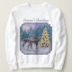 Sweatshirt Whitetail Deer & Christmas Tree Scene hivernale
