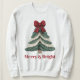 Sweatshirt Yarn Faux Embroidery Christmas Tree Merry Bright
