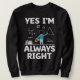 Sweatshirt Yes I m Always Right Math Mathematician Math Teach