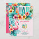 Fun Sweet 16 Anniversaire Tropical Luau, piscine, plage, invitation à la fête à thème pour les filles aux couleurs tendance rose chaud et turquoise. Et regardez le Flamant rose !
