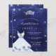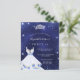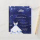 Une invitation moderne, élégante et glamour pour une fête Sweet 16, 16e anniversaire. Un arrière - plan bleu nuit avec de la poussière de parties scintillant imitation, une tiare et une robe. La couleur bleue est inégale. Le nom est écrit avec un script de style moderne écrit à la main. Personnalisez et ajoutez les détails de votre fête.
