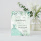 Une invitation branchée pour une Sweet 16, 16ème anniversaire fête, thème forestier enchanté. Un arrière - plan vert à l'eau avec des fougères et de la verdure d'eucalyptus, une robe verte. Le nom est écrit avec un script de style moderne écrit à la main. Personnalisez et ajoutez les détails de votre fête. Conseil : Si vous ne voulez pas qu'il ressemble à une carte postale, cliquez sur customiser, allez à l'arrière et retirez le séparateur et le timbre postal.