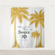 Ajoutez une touche des tropiques à votre douce fête du 16 avec cette amusante Parties scintillant d'or Sweet 16 Tapisserie Photo Booth ! La touche parfaite pour vos festivités festives ! Un design qui feuille une impression durable ! Exclusif de Coeurs et Love Designs!