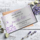 Une petite fille et tendance Enregistrer la carte magnétique Date pour une Sweet 16, 16e anniversaire fête. Un arrière - plan métallique faux argent moderne décoré de poussière de parties scintillant violet et d'une robe. Personnalisez et ajoutez une date et un nom. Lettres de couleur noire et violette. Le texte : Save the Date est écrit avec un grand script de style à la main tendance.