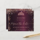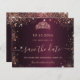 Une fille et tendance Enregistrer la carte Date pour une Sweet 16, 16e anniversaire fête. Une couleur arrière - plan à l'aspect faux métallique bordeaux. Décoré de faux étincelles d'or rose et d'une tiare, couronne. Le texte : Save the Date est écrit avec un grand script de style à la main tendance.