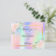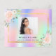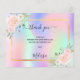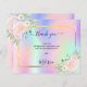 Un carte de remerciements girly et élégant avec photo. Arc-en-ciel, arrière - plan holographique en rose, violet, bleu et vert menthe, décoré de fleurs. Personnalisez et ajoutez votre note de remerciement.