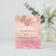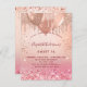 Pour un élégant Sweet 16, 16e anniversaire. Arrière - plan rose or et dégradé rose. Décoré d'or rose, de gouttes de parties scintillant rose, de la peinture goutte à goutte et des ballons. Personnalisez et ajoutez le nom, l'âge/le texte et les détails du parti. Le nom est écrit avec un script de style écrit à la main. Retour : dégradé rose or rose, design carte postale. Conseil : Si vous ne voulez pas qu'il ressemble à une carte postale, cliquez sur customiser, allez à l'arrière et retirez le séparateur et le timbre postal.