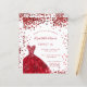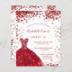 Une invitation moderne, élégante et glamour pour une fête Sweet 16, 16e anniversaire. Un arrière - plan blanc aux étincelles, une robe rouge. Le nom est écrit avec un script de style moderne écrit à la main. Personnalisez et ajoutez les détails de votre fête.