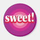 Un oeil-taureaux rose et violet avec le mot "Sweet" au centre est le design de cet aimant.