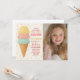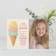 Transformez l’anniversaire de votre enfant en une boule de plaisir avec cette invitation d’anniversaire à la crème glacée sucrée et modifiable! Conçue avec des couleurs vives et joyeuses, des cônes adorables, des arrosages et des polices joueuses, cette carte verticale de 5 x 7 pouces donne le ton parfait pour une fête joyeuse. Personnalisez tout le texte en ligne : ajoutez en quelques minutes le nom, l’âge, l’heure de l’événement et les détails RSVP de votre enfant. Idéal pour les anniversaires d'été, les fêtes de filles ou de garçons, et les réunions sur le thème de la crème glacée. Facile à modifier, imprimer et envoyer !