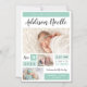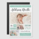 Cartes photos bébé magnétique imprimé sur mesure et abordable. Ce design minimaliste moderne dispose d'un montage photo de 3 blocs de couleur menthe qui peuvent être customisés en changeant la couleur arrière - plan en n'importe quelle couleur. Personnalisez-le avec le nom du bébé, les statistiques de naissance et vos photos. Utilisez les outils de conception pour customiser des polices de texte et des couleurs pour créer un magnet unique de bébé pour votre nouveau-né.