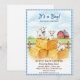 • A charming rustic watercolor design featuring cute baby goats atop hay bales against a country barn and blue gingham border.