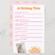Ces feuilles de jeu pour fêtes de premier anniversaire présentent un design de fruits amusant parfait pour des soirées à thème sucrées ou fruitées. Customisez à l'aide de l'outil d'édition pour ajouter vos propres questions et raccourcissez ou allongez les lignes de réponse. Trouvez les articles de fête correspondants dans ma boutique !