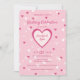 Cette belle invitation a des coeurs dans les tons rose et blanc, sur un arrière - plan rose. Le texte peut être customisé pour votre mariage ou votre douche nuptiale. Il conviendra à merveille à une Saint-Valentin ou à un mariage à thème de coeurs roses.