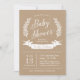 Chic invitation au baby shower rustique avec une typographie élégante dans une couronne botanique blanche. Design dispose d'un arrière - plan papier imitation kraft imprimé qui s'imprime dans le cadre de la conception sur n'importe quel type de papier. Cliquez sur Customiser pour modifier les polices de texte et les couleurs afin de créer une conception unique d'un type particulier.