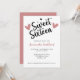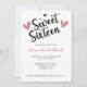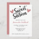 Sweet sixteen Coeur Invitation Anniversaire. Rejoignez-nous pour une célébration magique Sweet 16. Les clients pourront profiter d'activités ludiques, de délicieuses gourmandises et danser la nuit sous des lumières scintillantes. Adorez votre fête avec des décorations en forme de coeur et un magnifique gâteau d'anniversaire rose et blanc.
