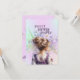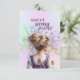 A faded vase of wildflowers is the background which is on another background of festive purple and mint.