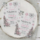 Invitations d'anniversaire sweet sixteen avec des flocons de neige roses et argentés et des pins. Idéal pour votre 16ème anniversaire d'hiver.