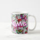 Un design festif avec un mélange de mignons bonhomme de neige en chocolat dans des enveloppements de papier peint aux couleurs vives. Mug avec un design personnalisable blanc, rouge, vert, rose et violet pour vous permettre de personnaliser avec votre propre texte, photos et idées. Créé à l'aide d'une photographie originale et de techniques numériques de Jess Perry.