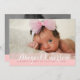 Très moderne et tout simplement élégant, ce design est une façon parfaite de présenter votre petite fille douce. Caractéristiques belle typographie cursive et deux grandes photos de votre bébé - l'un sur le devant et l'autre sur le dos. L'avant contient également les informations sur la naissance du bébé, et au dos une zone de texte spéciale à personnaliser avec les parents et les informations sur la famille.