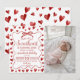 Sweetheart-themed first birthday invitation featuring red hearts, a delicate bow frame, and elegant typography, paired with a photo of the birthday girl. Perfect for Valentine-inspired or heart-themed first birthday celebrations. This customizable invitation allows you to add a child’s photo, name, date, and party details, creating a warm and memorable keepsake for a baby girl’s special day.