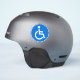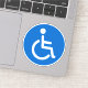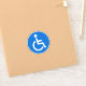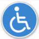 Autocollants ronds avec le symbole classique handicapé, un homme en fauteuil roulant sur un arrière - plan bleu.