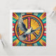 Carte vierge. Porte de colombe et signe de paix dans un style boho rétro. Couleurs terreuses vintages rouges, bleues et jaunes.
