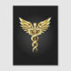 Symboles de caducée polygonaux or sur fond noir isolé. Symbole low poly de médecine.