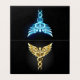 Symboles caducées polygonaux dorés sur fond noir isolé. Symbole low poly de la médecine.