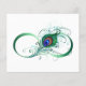 Le symbole de l'infinity with a bright, green, artistic peacock feather on a white background. Tattoo style.
