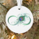 Le symbole de l'infinity with a bright, green, artistic peacock feather on a white background. Tattoo style.