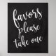 Un élégant panneau mariage de pointe, comporte le texte "Favors s'il vous plaît prendre un " dans une police de script extraverti, la texture de la brosse ajoute une sensation spontanée et ludique. La couleur arrière - plan peut être personnalisée selon vos besoins et préférences, s'il vous plaît contactez-moi si vous avez une demande spéciale.