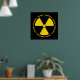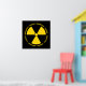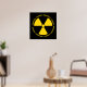 Affiche noire avec symbole de rayonnement jaune entourée de "Danger - Radiation" en texte jaune extensible.